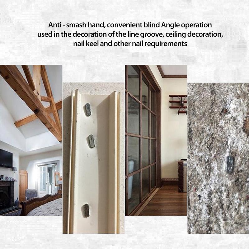 Mi-automatic cement nail device, dedicated to the concrete wall, brick wall. Exquisite small size, simple structure, easy to maintain, with thickened aluminum clip, heavy accuracy snap,b alloy steel tip. No need for pneumatic electric, with hammer operation, convenient and fast.