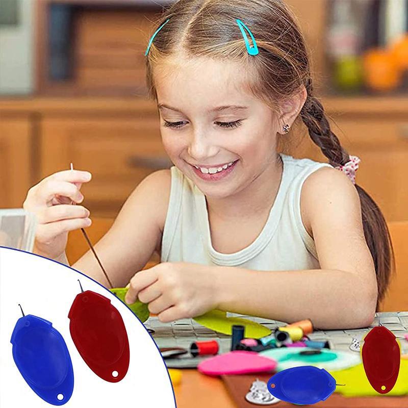 - Easy To Use: Check out the hole at one side, insert the needle into it, press the middle part until the little hook protrudes, and hitch the sewing thread on the hook.
